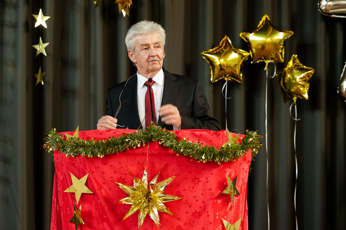 Unser Ehrenvorsitzender Gerhard Danzl erfreute uns noch mit einem amüsanten Dialog zwischen einem Kind namens Lena und seiner Mutter. Lena hinterfragt mit entwaffnender Logik die Geschenke-Logistik des Christkinds und bringt ihre Mama damit ziemlich Argumentationsnöte. Dabei geht es doch eigentlich nur um einen Wunschzettel zu Weihnachten.