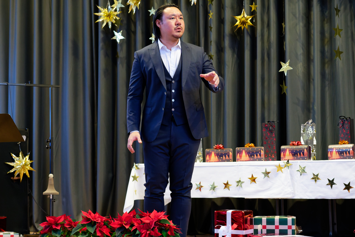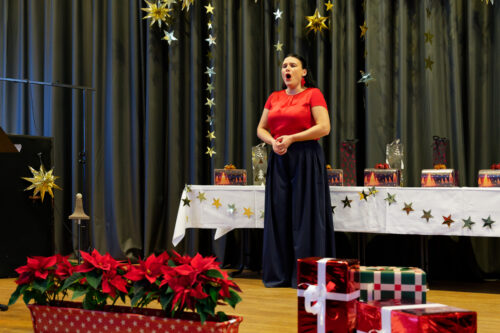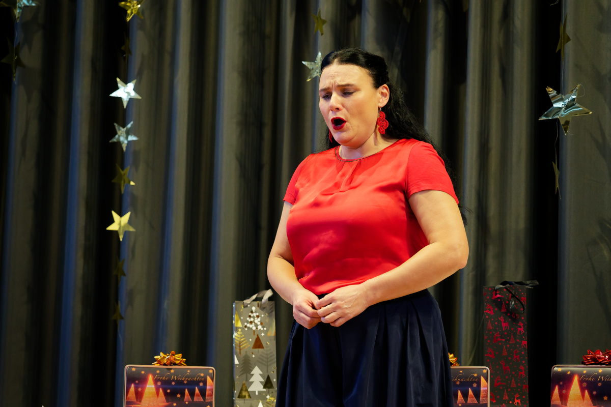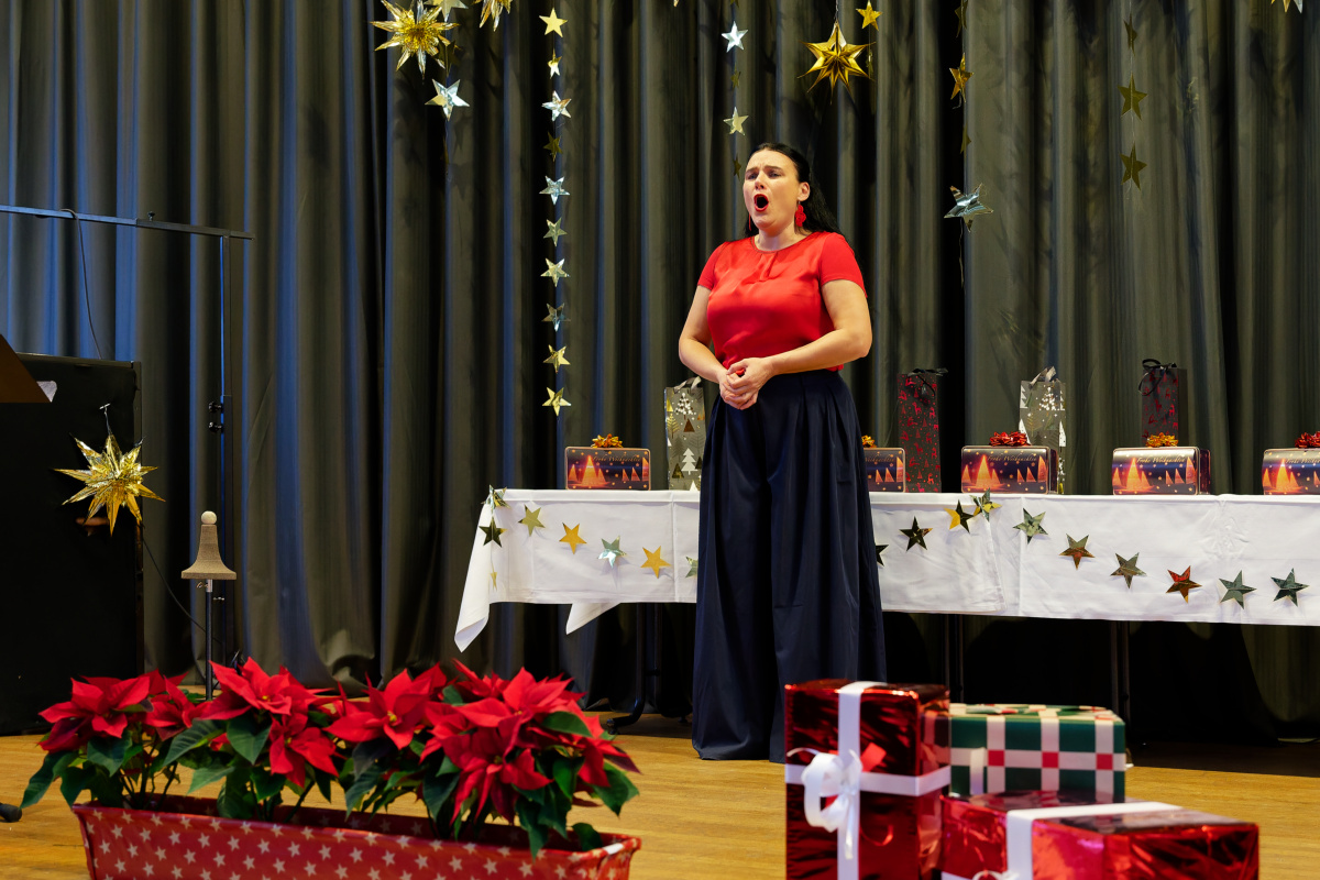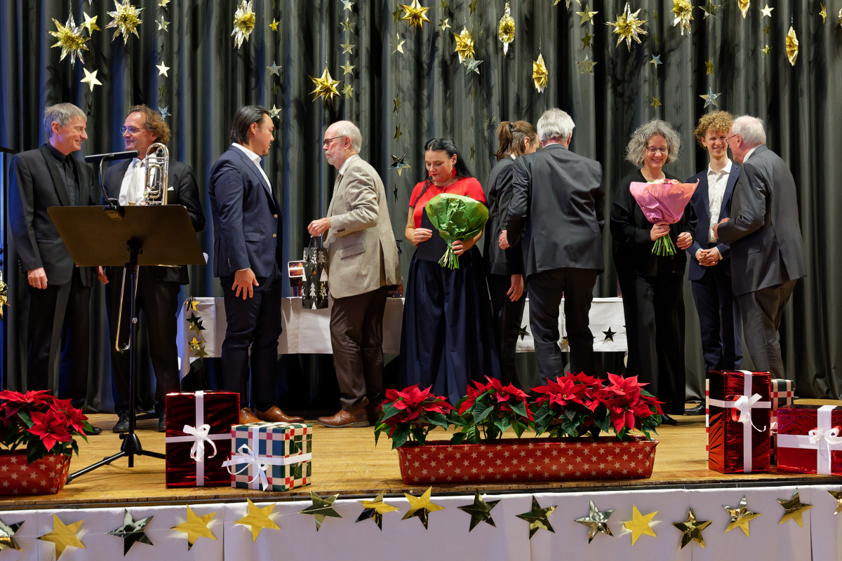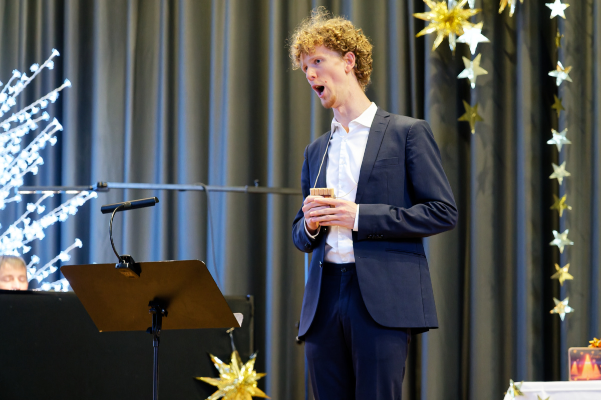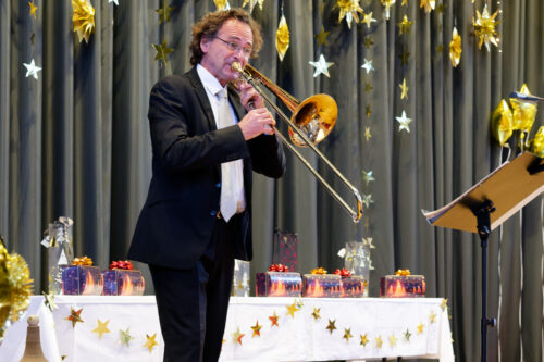 Nunmehr gehörig eingehüllt in eine weihnachtliche Stimmung folgte auch heuer wieder der Höhepunkt unserer vorweihnachtlichen Feier: Drei Sänger und eine Sängerin, ein Pianist und ein Solo-Posaunist des Internationalen Opernstudios Nürnberg erfreuten uns wieder mit wunderbar schöner Musik.