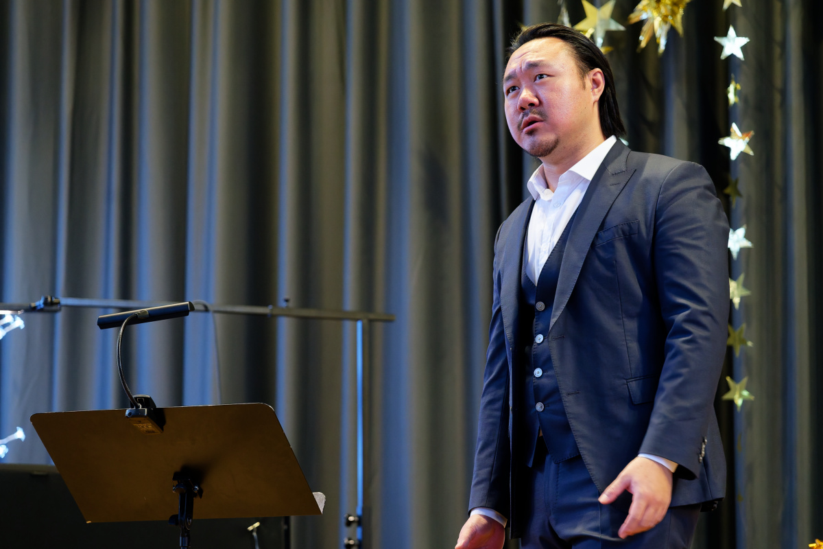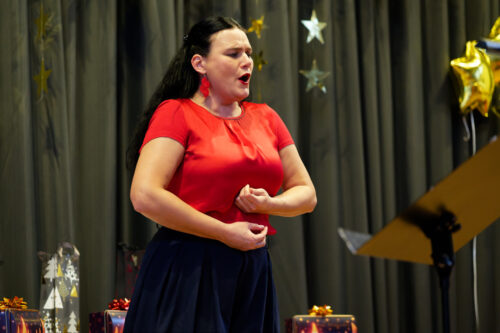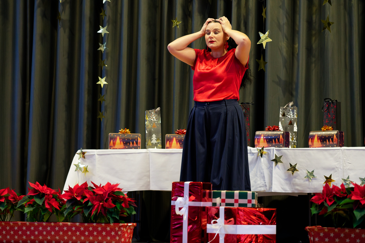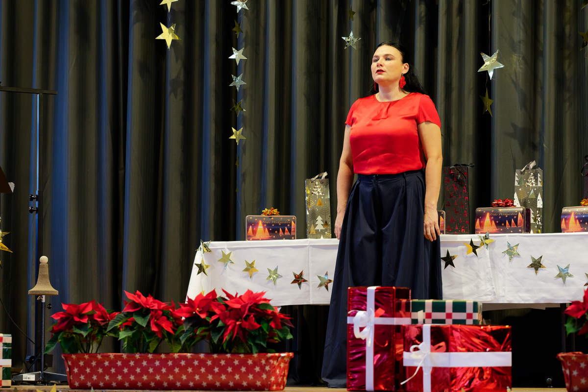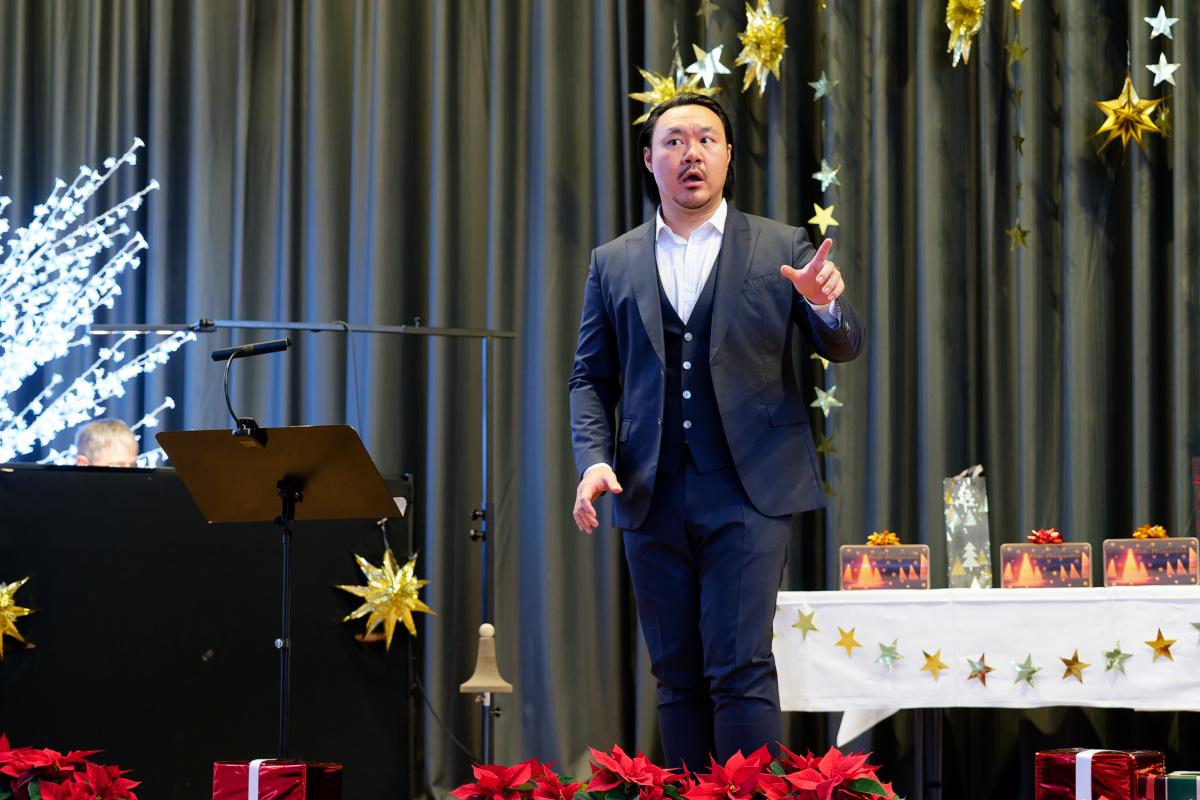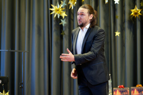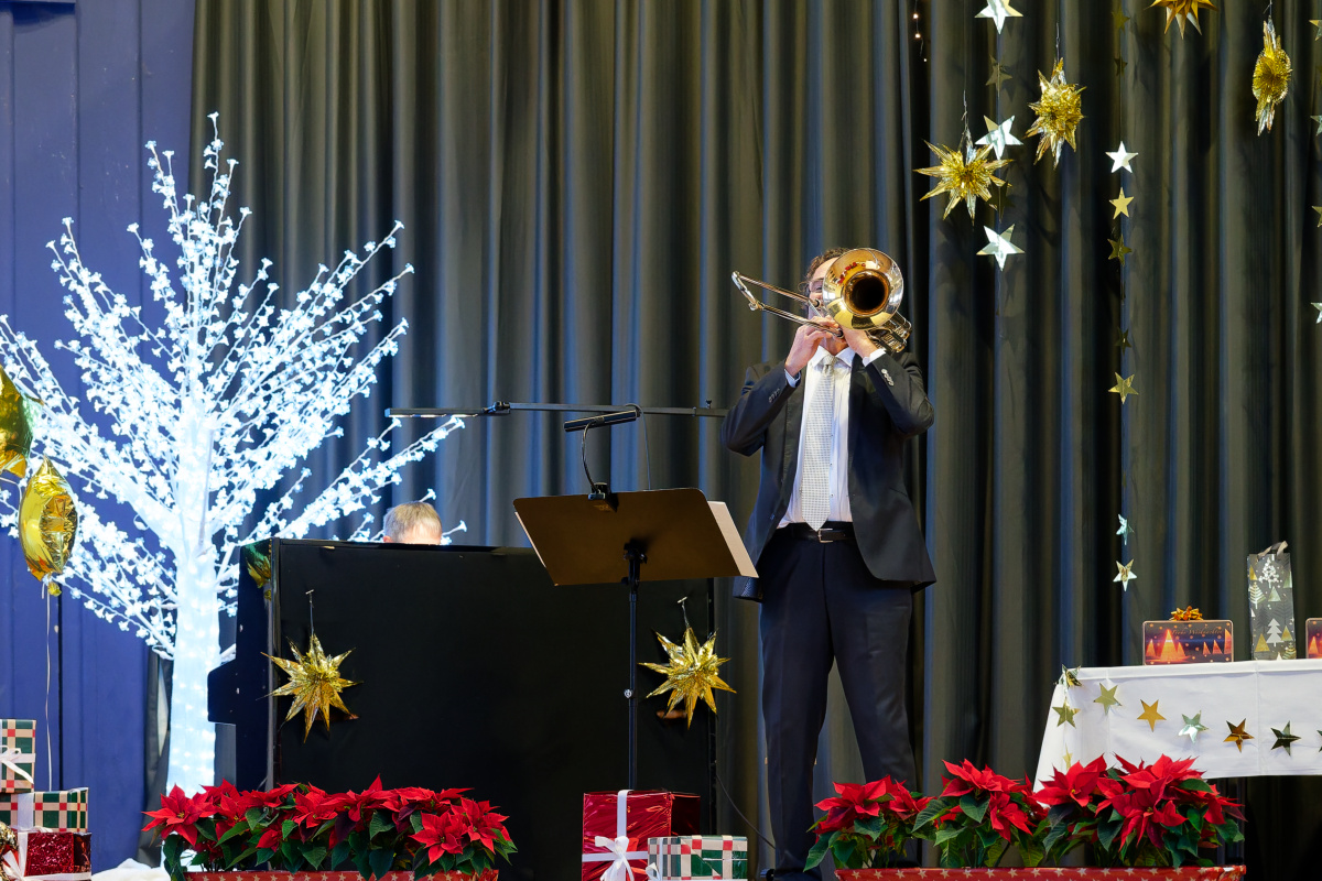 Nunmehr gehörig eingehüllt in eine weihnachtliche Stimmung folgte auch heuer wieder der Höhepunkt unserer vorweihnachtlichen Feier: Drei Sänger und eine Sängerin, ein Pianist und ein Solo-Posaunist des Internationalen Opernstudios Nürnberg erfreuten uns wieder mit wunderbar schöner Musik.